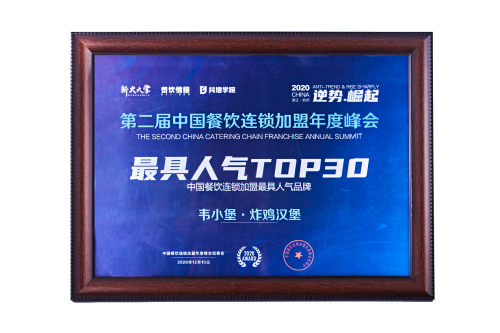 在品牌团队和门店的共同努力下,2018年11月,韦小堡双平台单量合计首次破2万单,2019年5月,美团单平台首次破万单,并荣获“2019中国餐饮类连锁汉堡最佳人气品牌”、“2020年中国连锁餐饮最具人气品牌”等多项业内荣誉。行业的认可给了韦小堡在数字化精细化运营上更大的信心,也让韦小堡门店在全国各地陆续落地开花。立足华南,逐渐辐射向内陆地区,如今远到东北和内蒙都能见到韦小堡大脸的可爱形象。